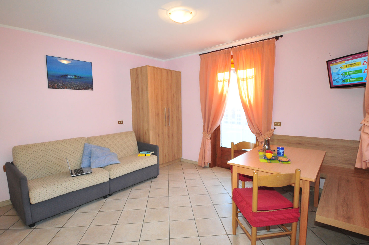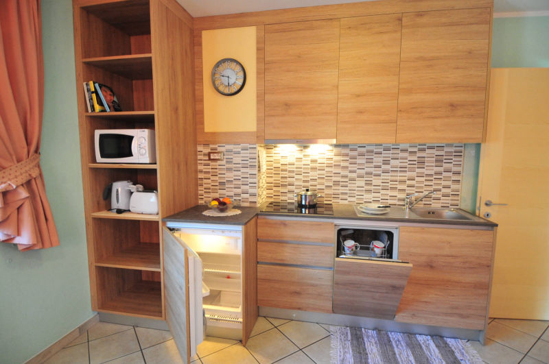 Appartamento a piano terra composto da angolo cottura, con tutto il necessario per cucinare e mangiare, non puo’ mancare la lavastoviglie, bollitore, microonde, frigorifero e tosta pane.
