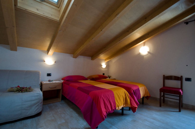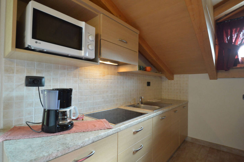 Appartamento al secondo piano, soffitto in legno a vista e balcone con vista montagna, composto da angolo cottura, con tutto il necessario per cucinare e mangiare, non puo’ mancare la lavastoviglie, bollitore, microonde, frigorifero, tosta pane.
